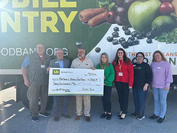 To commemorate United Bank's 45th year of proudly serving the NWA communities, a $2,500 donation was made to the Northwest Arkansas Food Bank. This donation guaranteed between 12,000 to 13,000 meals for our NWA neighbors in need.